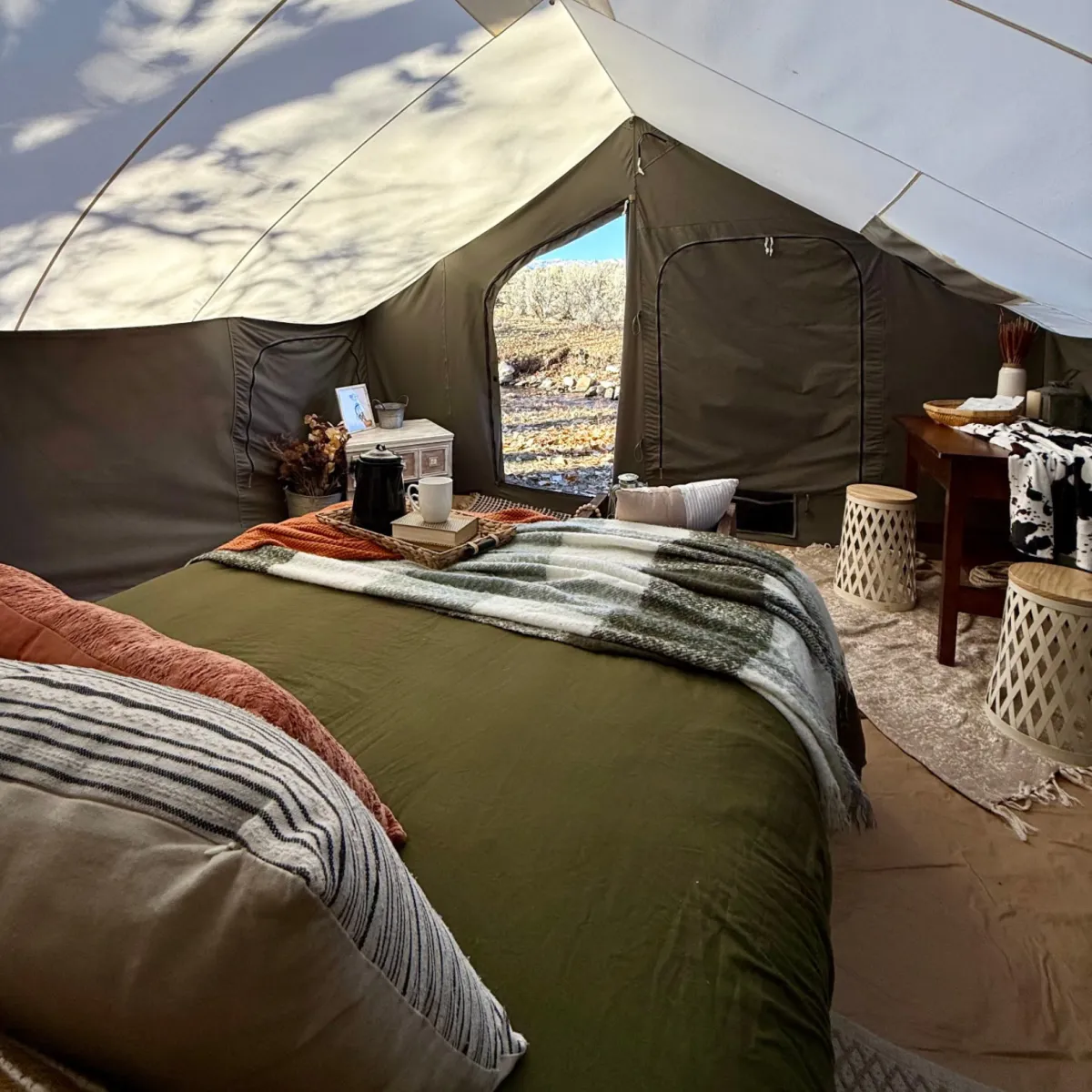 Each tent is individually styled, offering the perfect mix of rugged charm and cozy comfort.